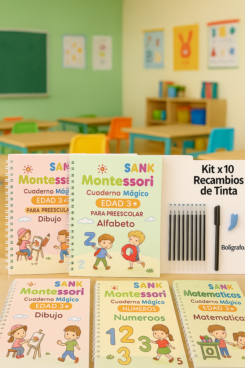Pack de Caligrafía Reutilizable — 4 Libros Montessori + 10 Recargas Gratis